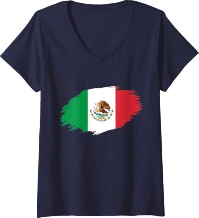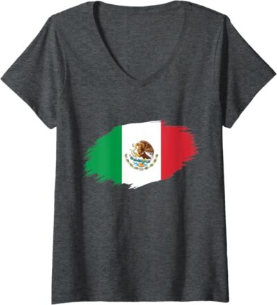 Women’s Mexico Flag V-Neck Women T-Shirt – Camiseta Bandera Mexicana