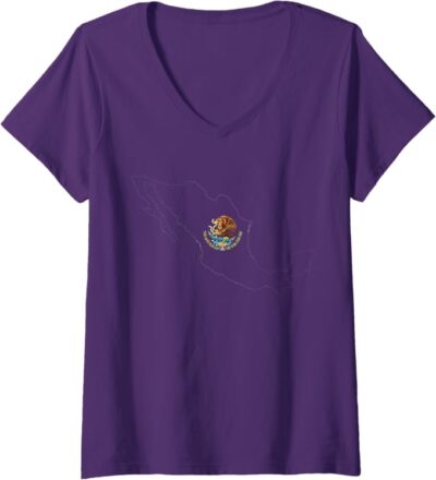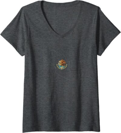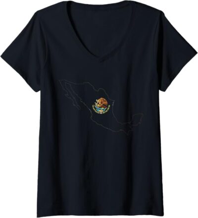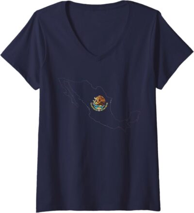 Women’s Mexico Flag V-Neck Women T-Shirt – Escudo Nacional de México Map Mexican Pride Shirt