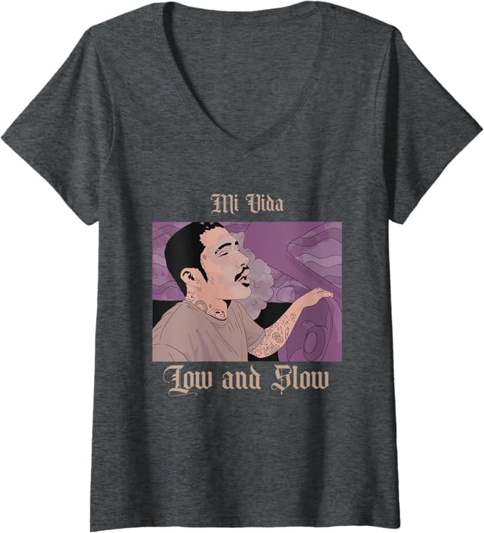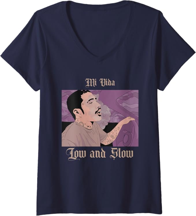Women’s Mi Vida Low And Slow Mexican Lowrider Hombre Chicano V-Neck Women T-Shirt