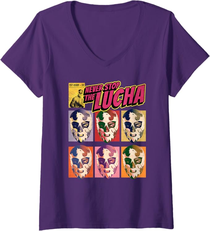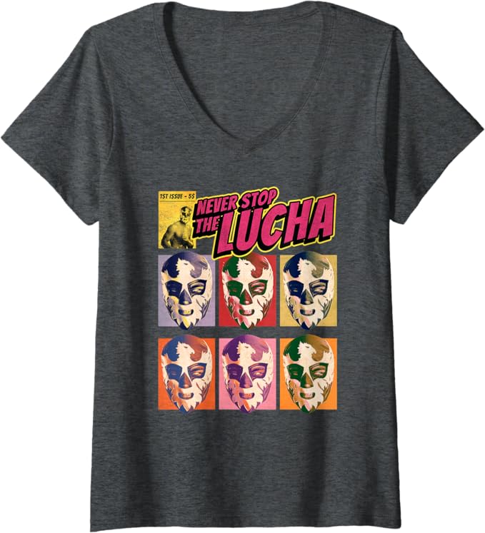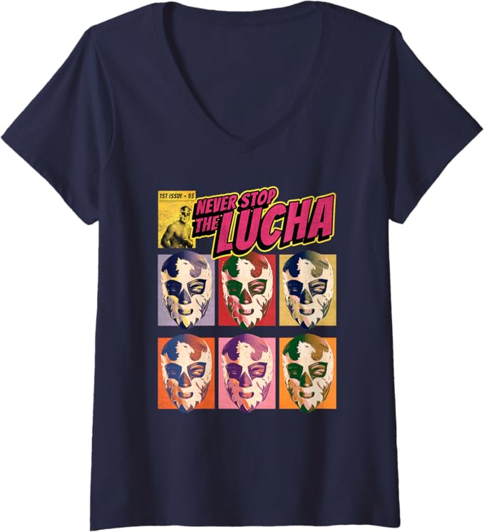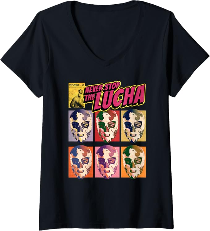 Women’s Never Stop The Lucha Lucha Libre Wrestling V-Neck Women T-Shirt – Mexican Wrestling Shirt