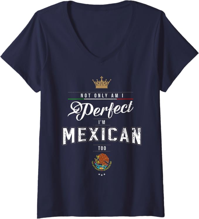 Womens “Not Only Am I Perfect, I’m Mexican Too” Chicano Hombre Mujer V-Neck T-Shirt