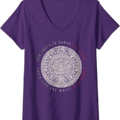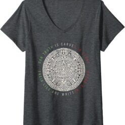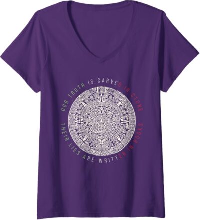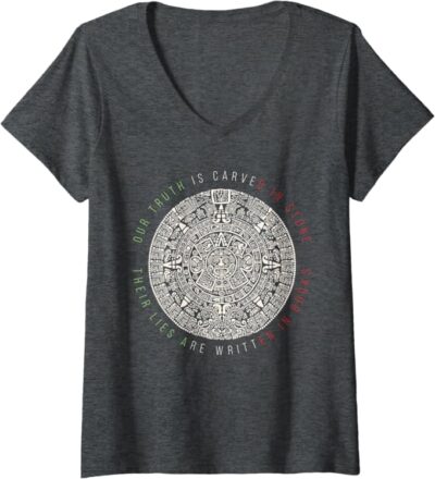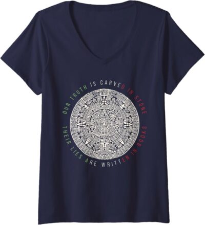 Women’s Our Truth Is Carved In Stone Aztec Mexica Calendar V-Neck Women T-Shirt – Mexican Style Graphic Tee