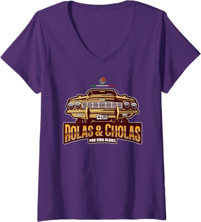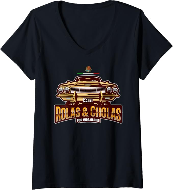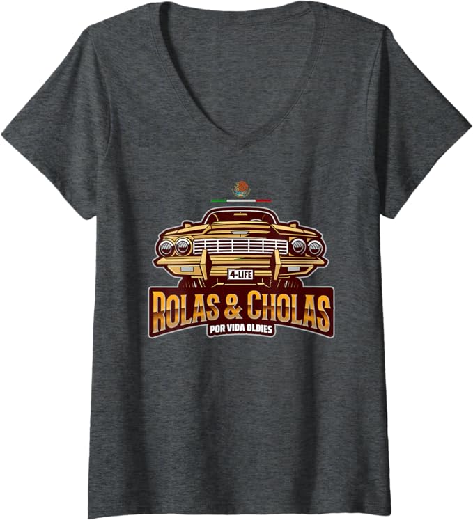 Oldies & Lowrider-Inspired Design: Featuring the phrase “Rolas & Cholas Por Vida,” this t-shirt celebrates the timeless connection between classic oldies music and lowrider culture, a staple of Chicano heritage.