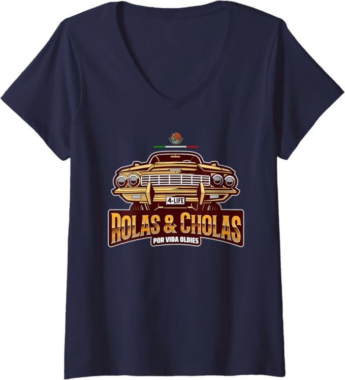Womens Rolas & Cholas Por Vida Oldies Mexican Lowrider Hombre V-Neck T-Shirt