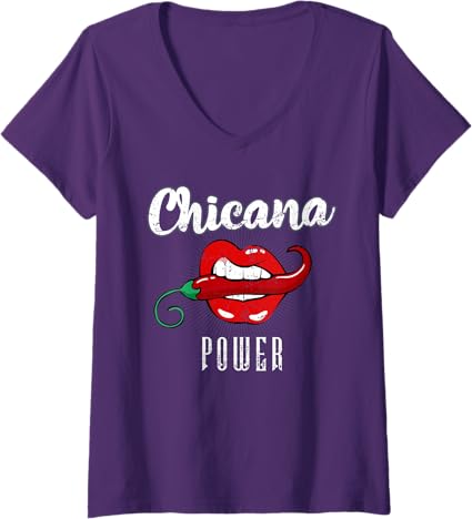 Chicana Power V-Neck T-Shirt for Latina Mexicana Women – Women’s Mexico Pride Shirt