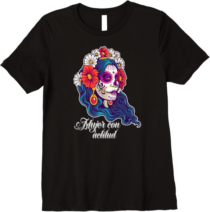 - The bold “Mujer Con Actitud” message paired with the intricate sugar skull design makes this t-shirt a statement piece for anyone who embraces their heritage and culture.