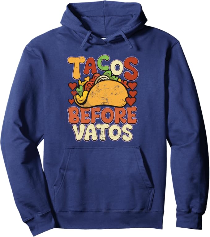 Tacos Before Vatos Funny Vintage Mexican Chicano Pullover Hoodie – Classic Retro Style