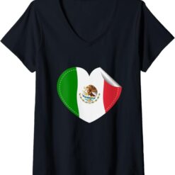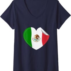Women’s Bandera De México Heart-Shaped Mexican Flag V-Neck Women T-Shirt