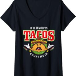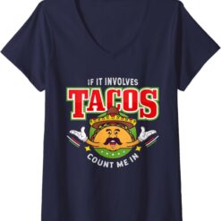 Women’s ‘If It Involves Tacos Count Me In’ Funny Chicano Mexican Taco V-Neck Women T-Shirt
