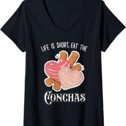 Women’s ‘Life Is Short, Eat The Conchas’ Funny Mexican Chicana V-Neck Women T-Shirt
