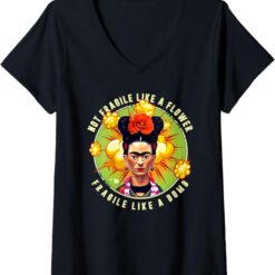 Women’s ‘Not Fragile Like A Flower, Fragile Like A Bomb’ Mexican Quote V-Neck Women T-Shirt