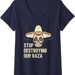 Women’s ‘I Just Look Illegal’ Creepy Mexican Dog Skull Chicano V-Neck Women T-Shirt